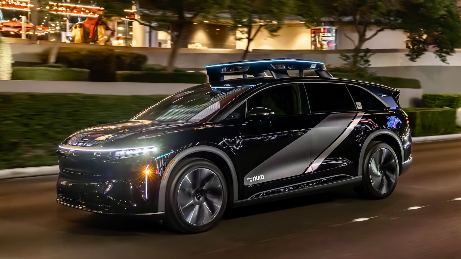 The robotaxi is built on the all-electric Lucid Gravity SUV, offering seating for up to six passengers and generous luggage space. It features a cutting-edge autonomous system developed by Nuro, including high-resolution cameras, solid-state lidar, and radar sensors that provide 360-degree awareness. A distinctive roof-mounted sensor array, called the “halo,” incorporates LED lighting to help riders identify their vehicle and display trip status.