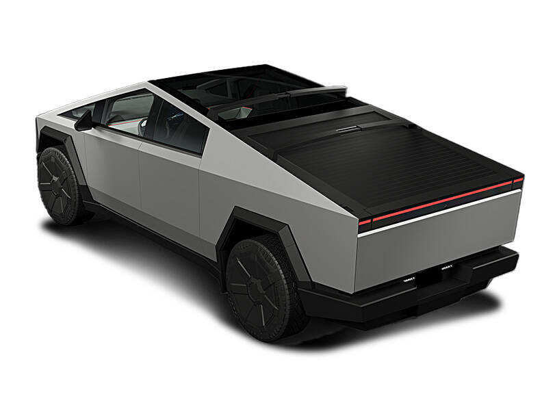The exterior is built from ultra‑hard stainless steel panels that are nearly unbreakable and dent-resistant. The vehicle measures about 5.68 m long, 2.03 m wide (without mirrors), and stands around 1.79 m tall, riding on a 3.63 m wheelbase. Its functional design includes a 1.85 m-long load bed, sleek LED lighting, solar‑proof tinted glass roof, optional retractable hard or soft tonneau cover, and adaptive air suspension for up to 40 cm off‑road ground clearance. The angular silhouette makes a strong visual statement.